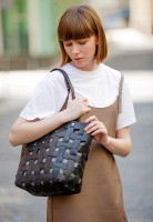 Кожаная плетеная женская сумка BlankNote Пазл L черная Krast - BN-BAG-33-G