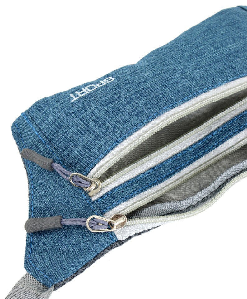 Легкая нейлоновая сумка-карман, на пояс. 2 отделения, с выходом для наушников. Регулируемый корсажный ремень.