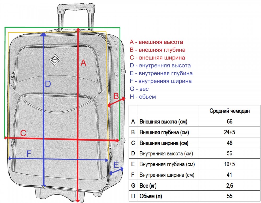 2 кармана спереди, место для подписи чемодана