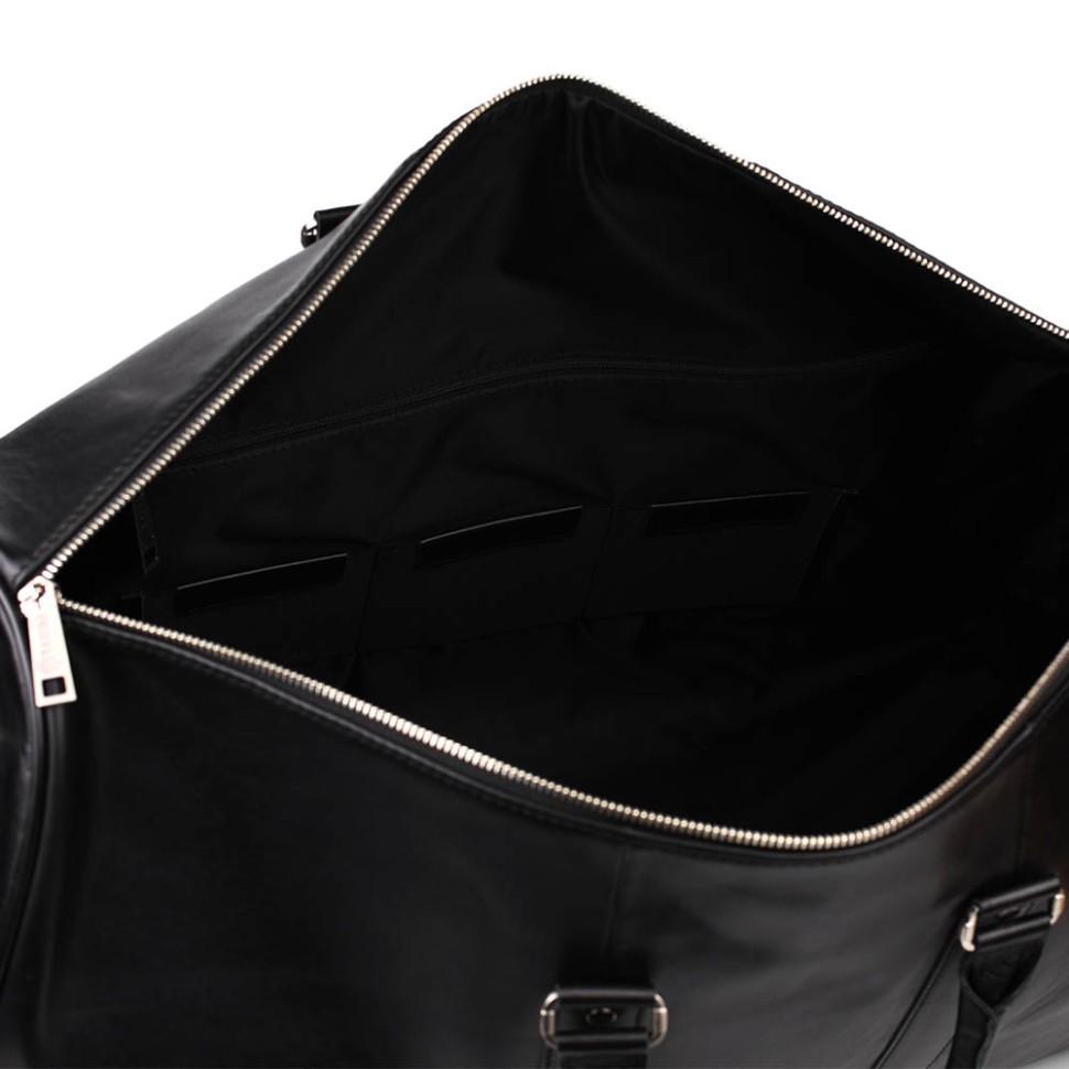 В комплекте с дорожной сумкой широкий 5см кожаный наплечный ремень с кожаным наплечником. Ремень полностью кожаный с наплечником. На дне сумки пять пластиковых ножек.