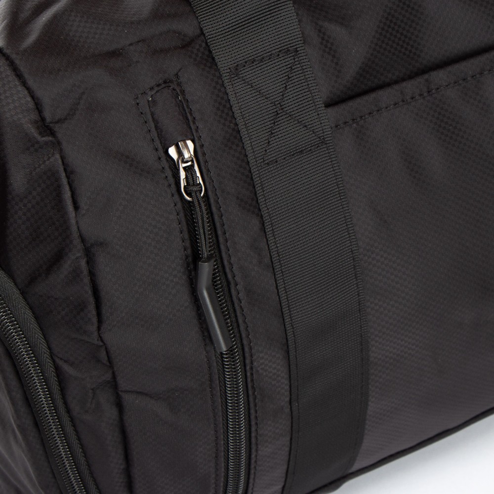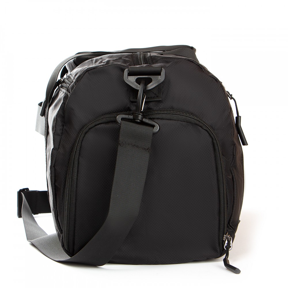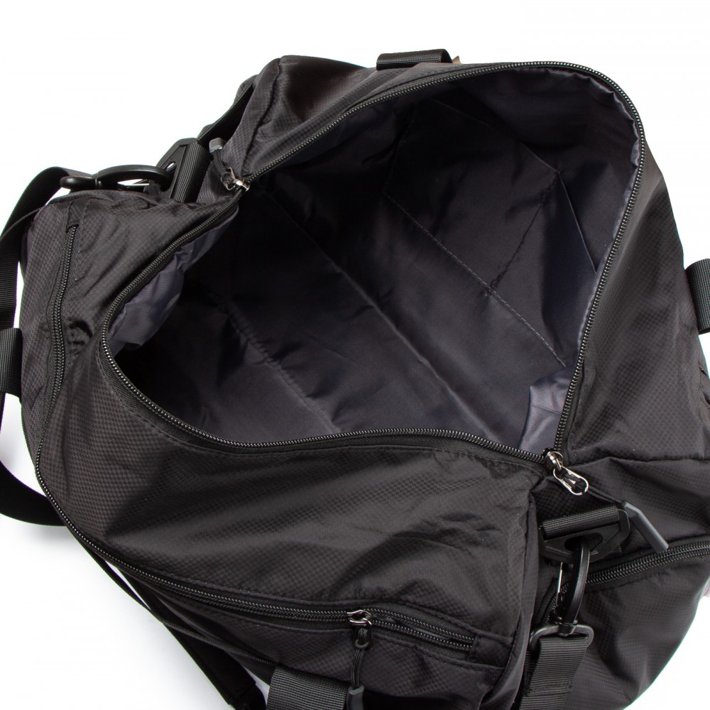 Количество отделов: 1 отделение, закрывается на молнию. Внутри отделения есть карман на молнии и двойной открытый карман. На фасаде находится карман на молнии и открытый карман. На обратной стороне расположен большой карман на молнии с герметичной подкладкой. На торцах сумки расположены карман для обуви и открытый карман.