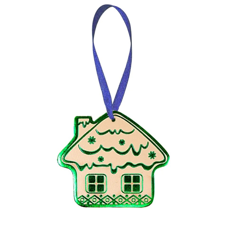 Игрушка на елку из кожи HiArt Домик Toy-House-White-Green