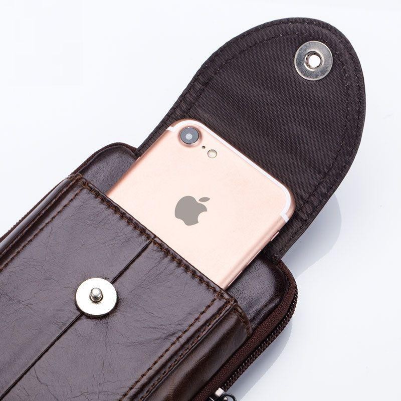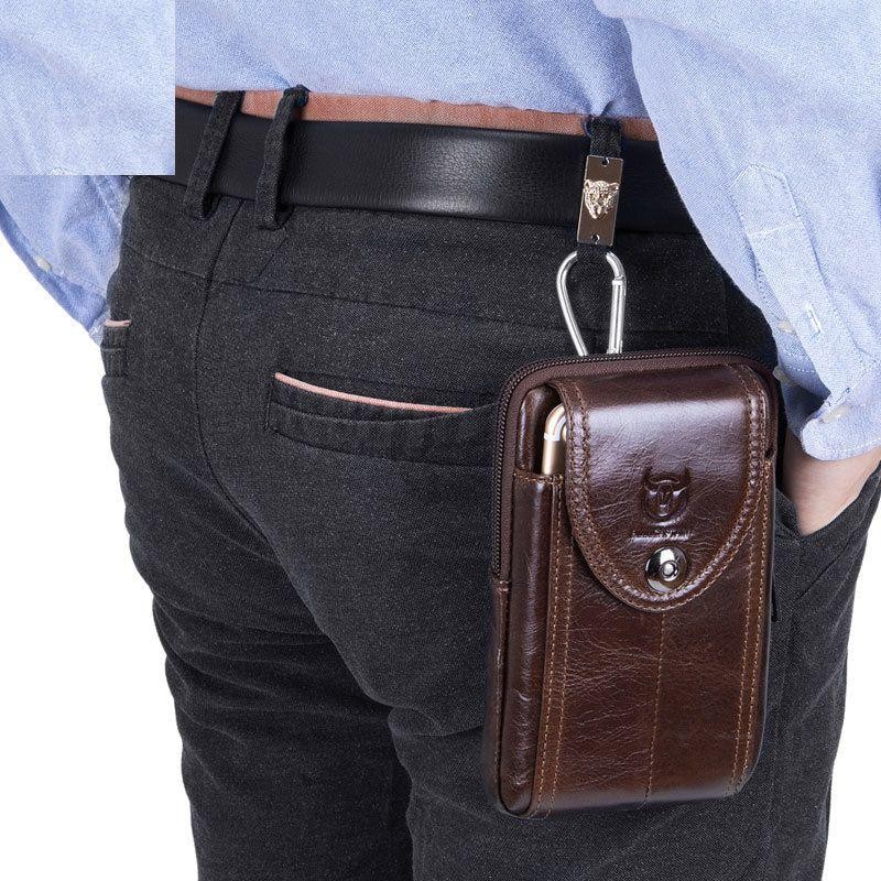 Кожаная коричневая сумка на пояс для смартфона Bull t1397