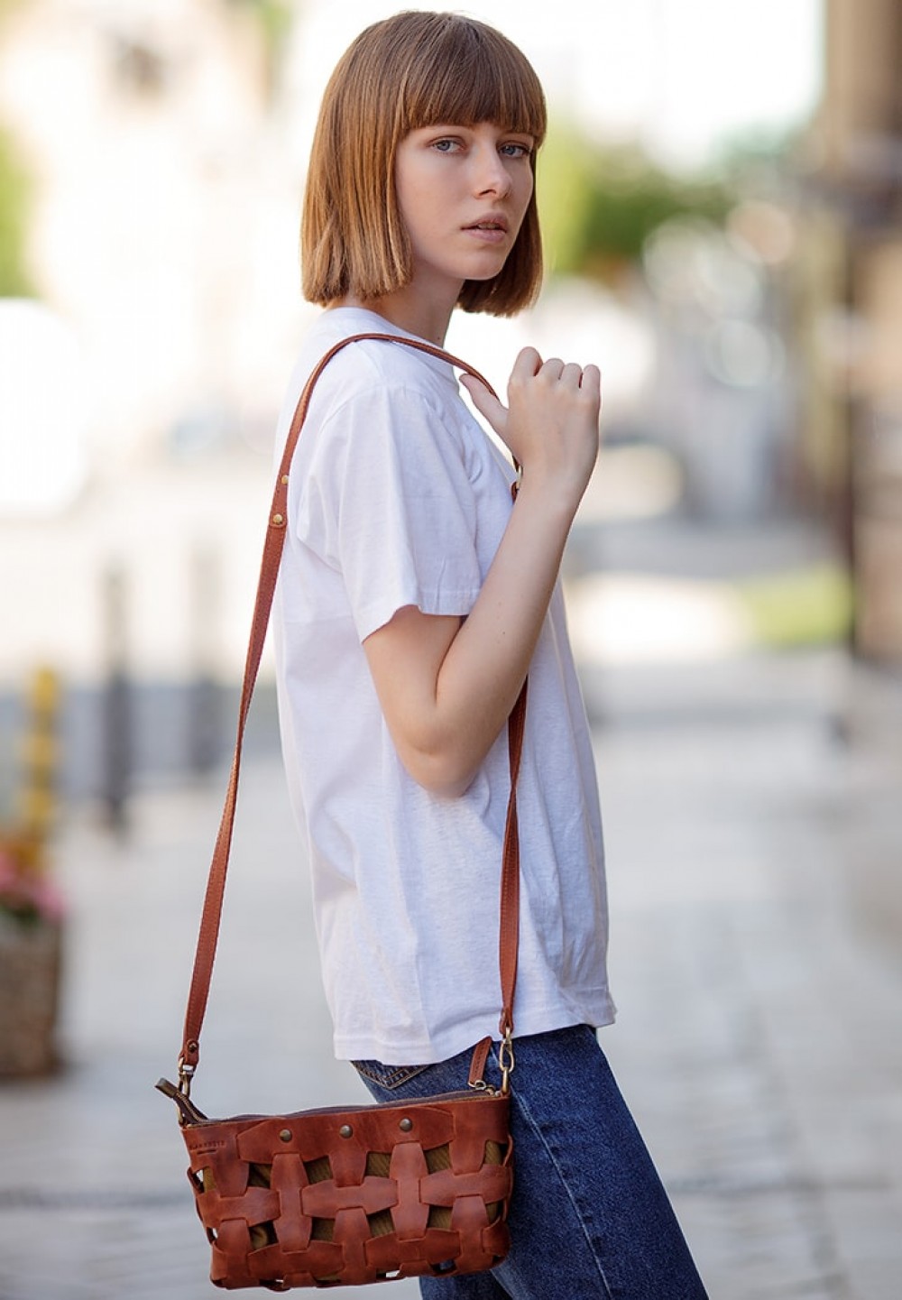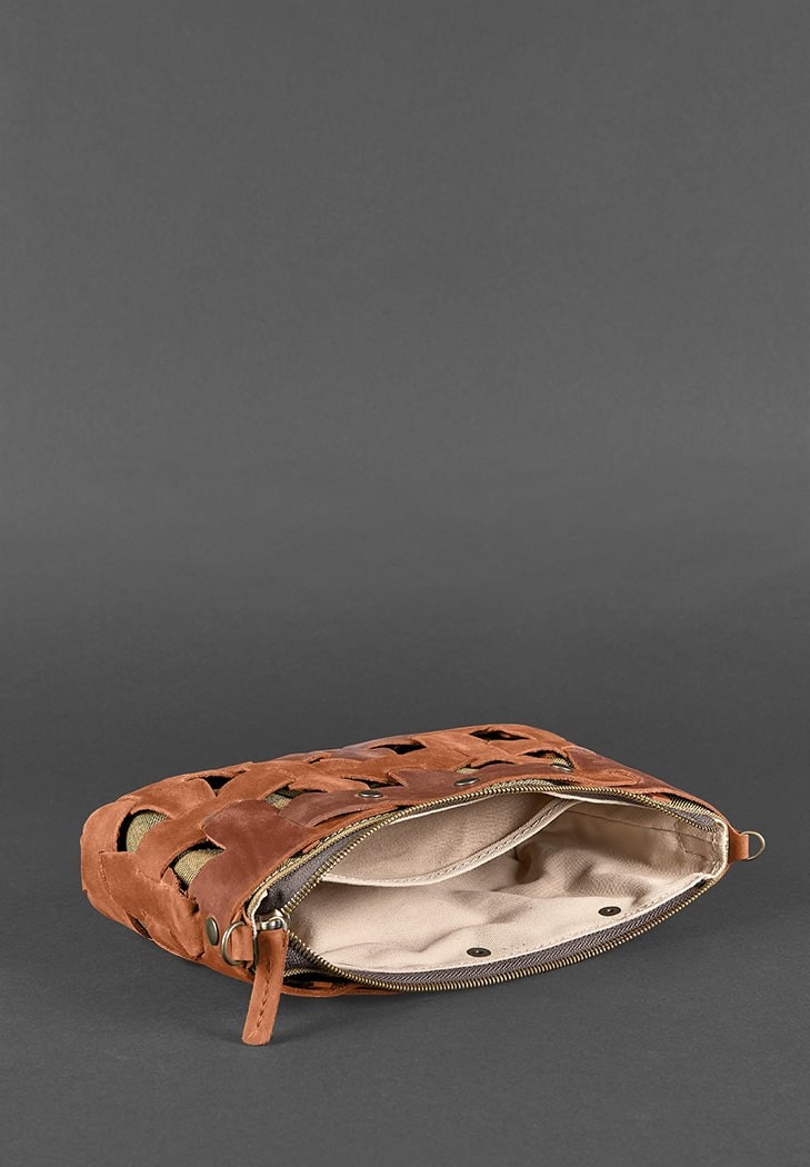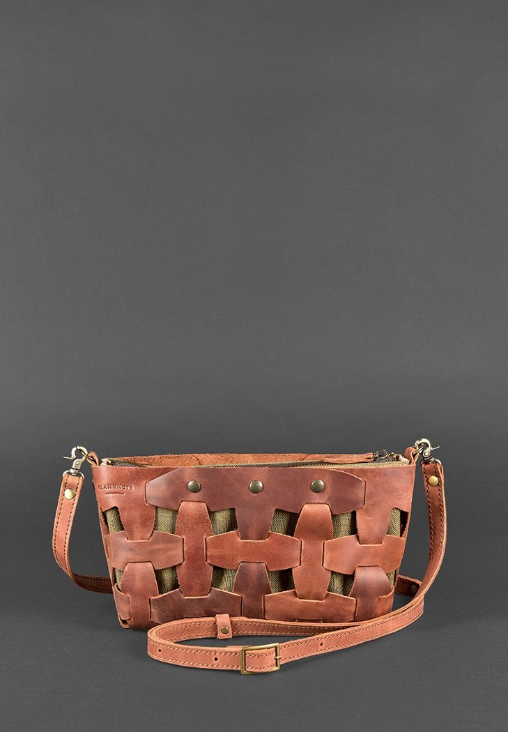 Кожаная плетеная женская сумка BlankNote Пазл S светло-коричневая Crazy Horse BN-BAG-31-K-KR