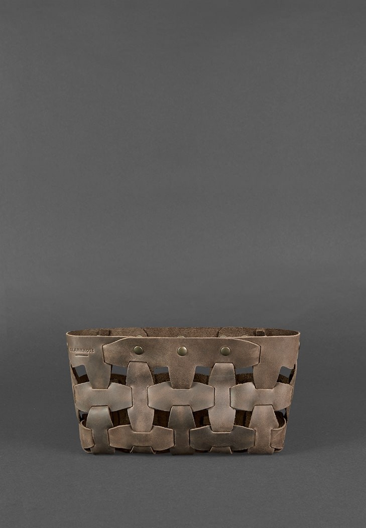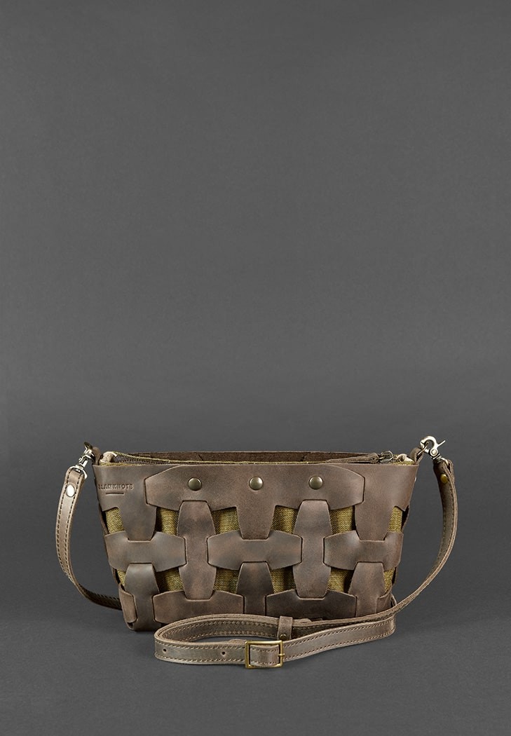 Кожаная плетеная женская сумка BlankNote Пазл S темно-коричневая Crazy Horse BN-BAG-31-O