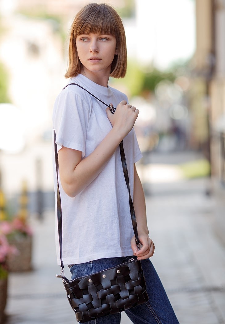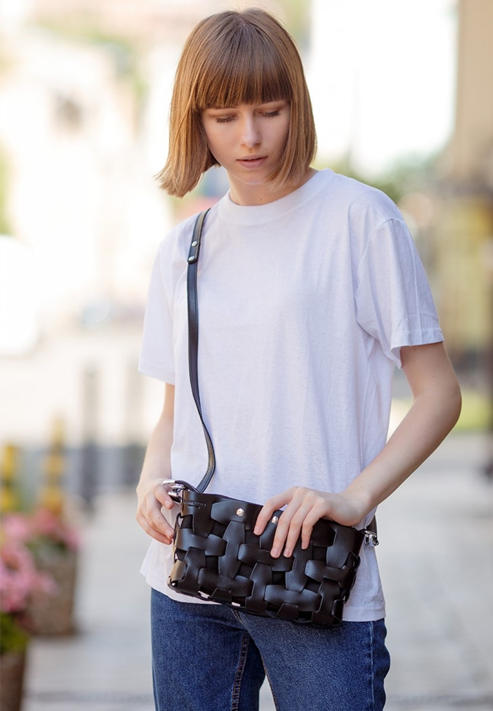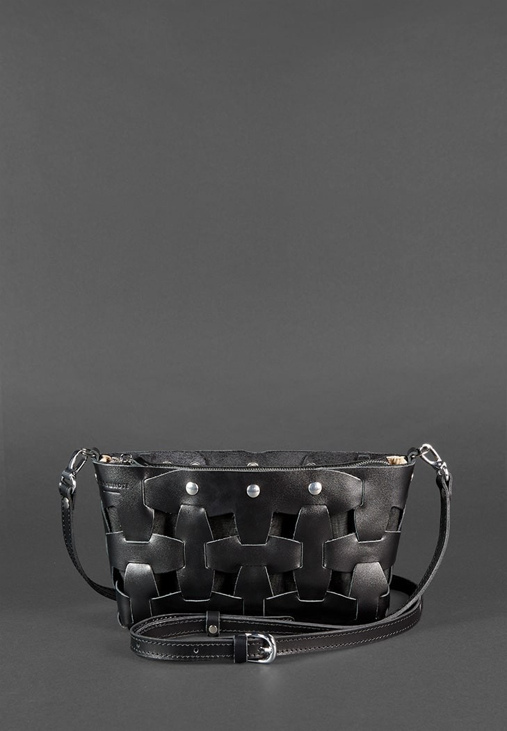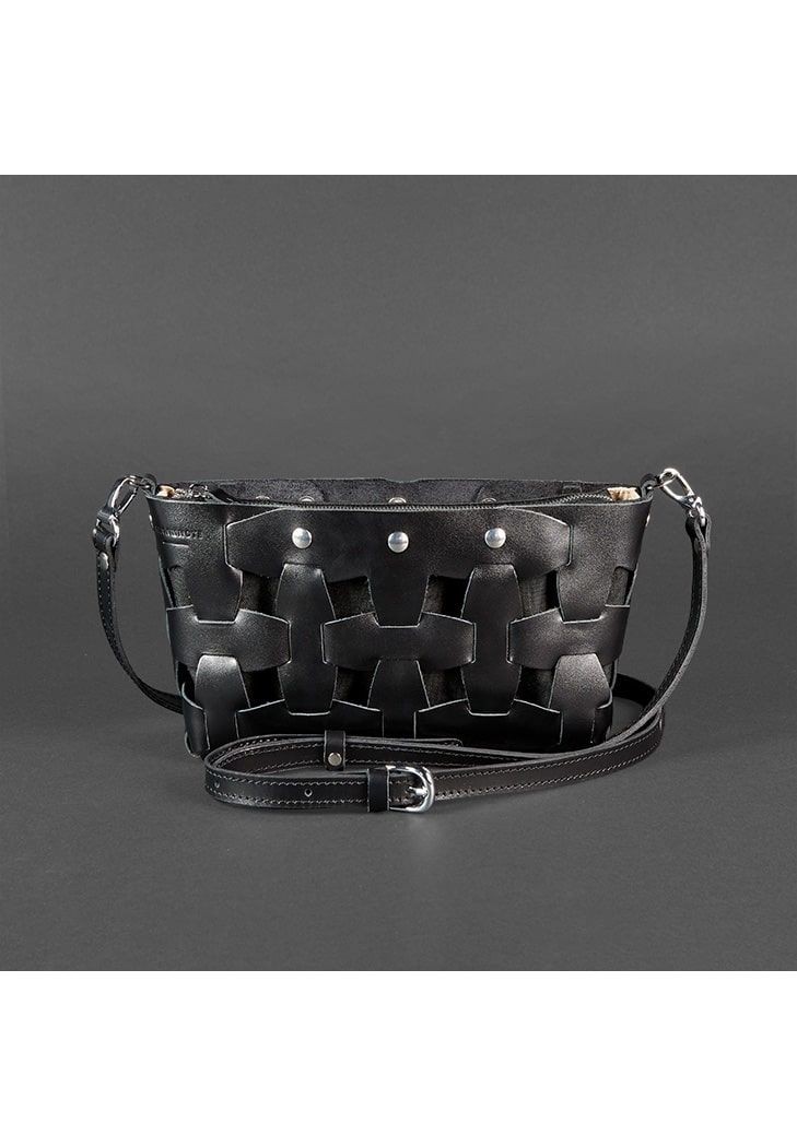 Кожаная плетеная женская сумка BlankNote Пазл S угольно-черная BN-BAG-31-YGOL