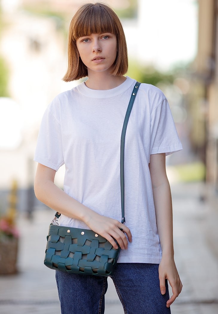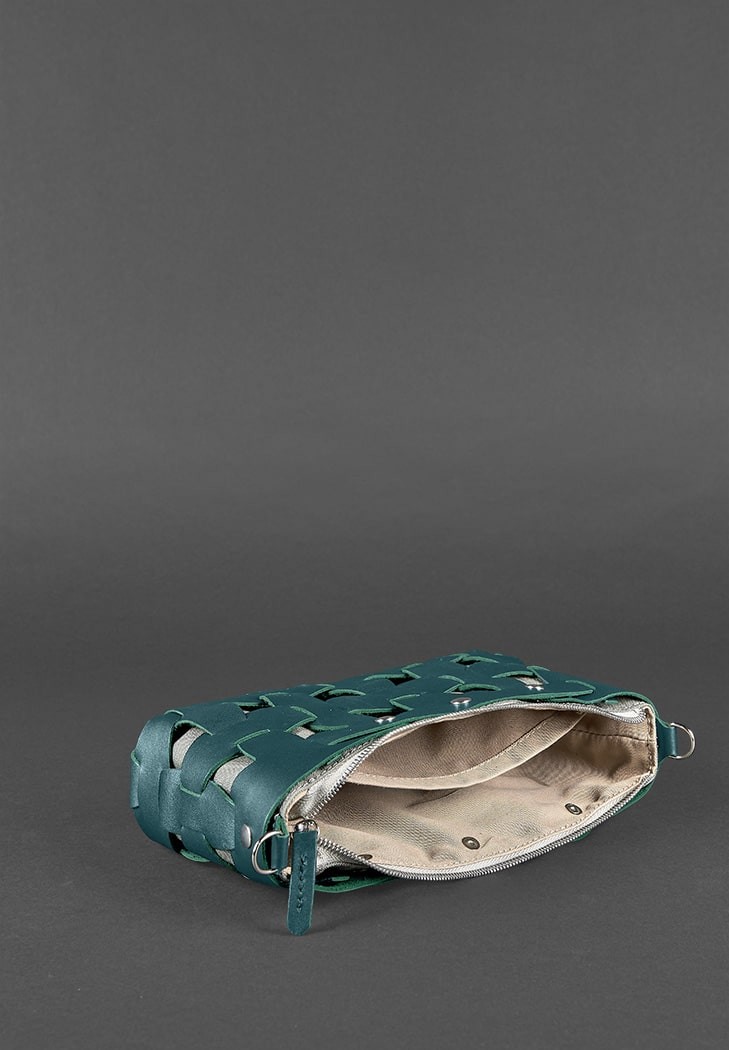 Кожаная плетеная женская сумка BlankNote Пазл S зеленая Krast BN-BAG-31-MALACHITE