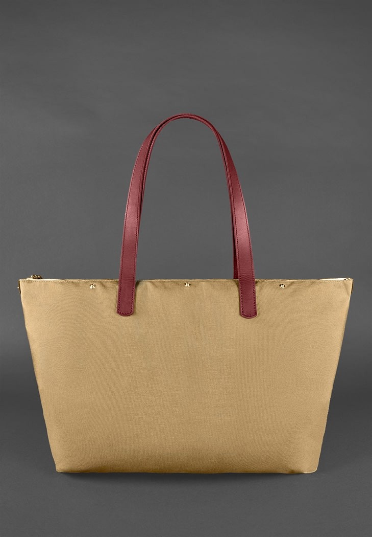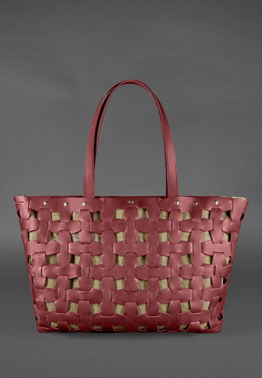 Красивый кожаный каркас сумки изготовлен из полосок натуральной кожи Краст. К нему металлическими кнопками пристёгивается внутренний текстильный мешок, который можно легко снять, чтобы постирать или почистить.