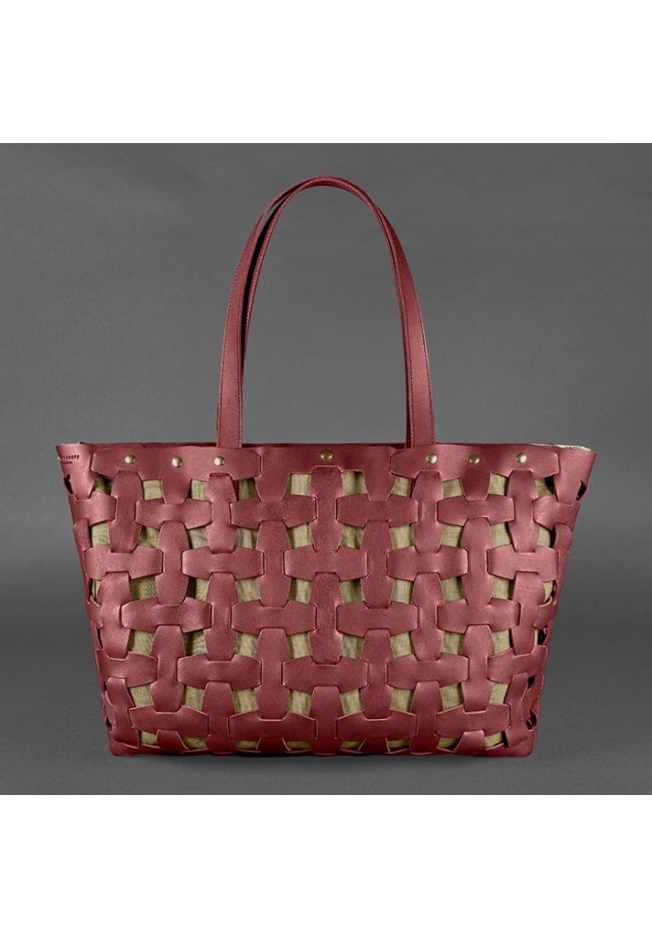 Кожаная женская плетеная сумка BlankNote Пазл Xl бордовая Krast BN-BAG-34-VIN