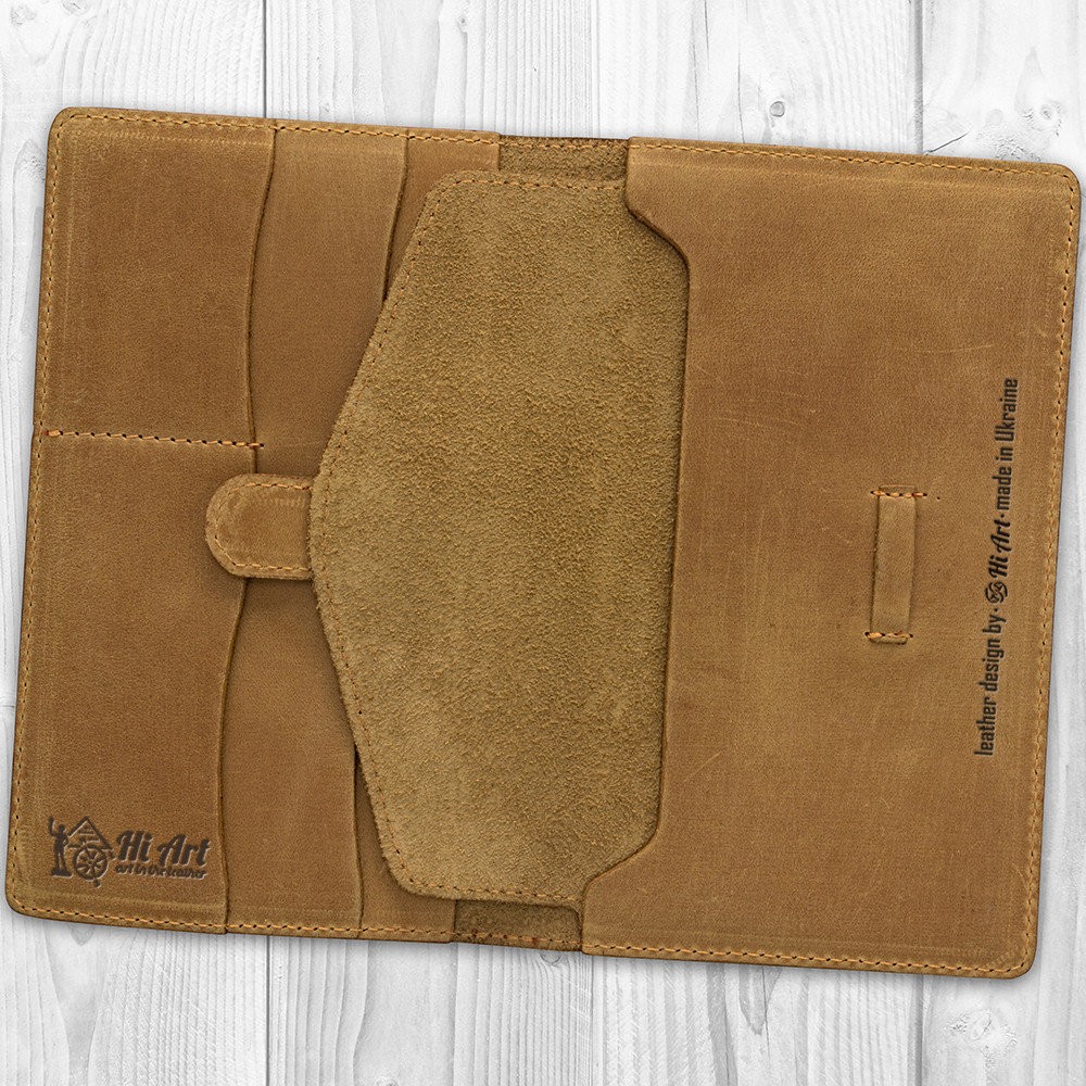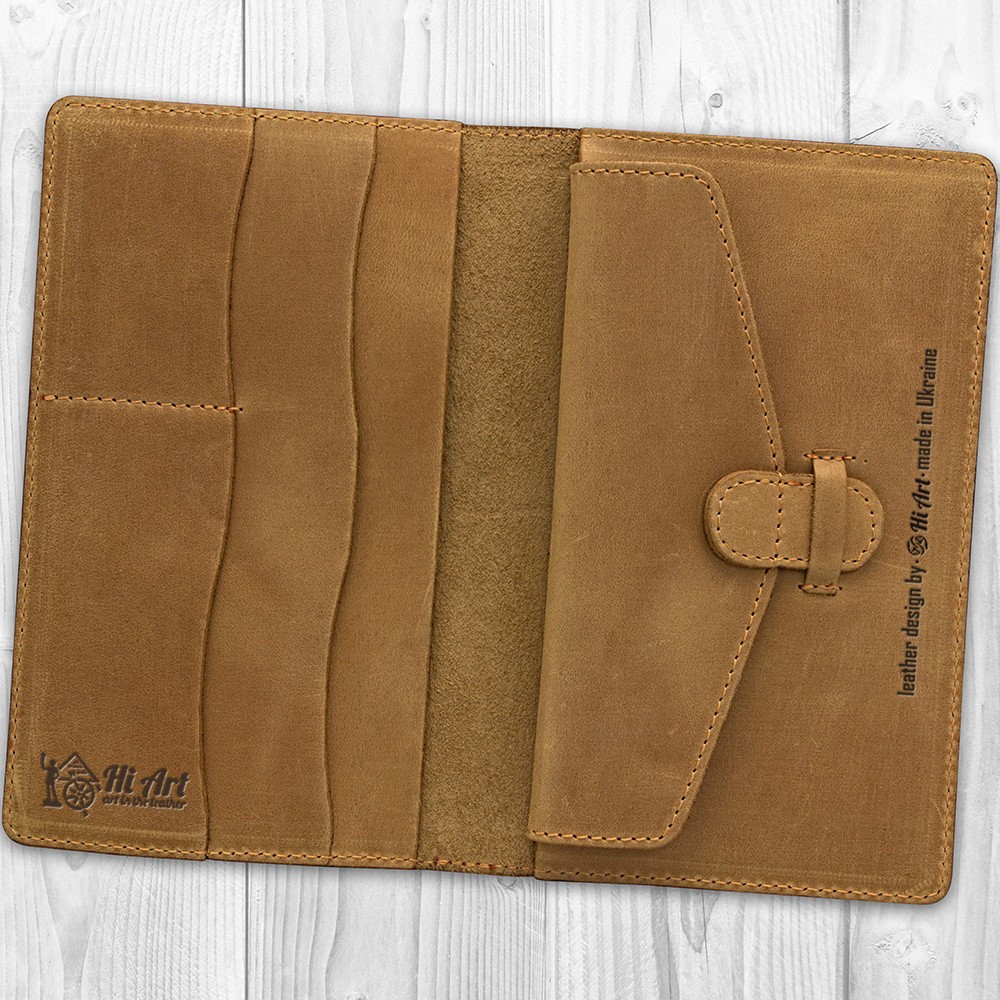 Эргономичный и стильный кошелек ручной работы из натуральной кожи на кнопках с художественным тиснением от HiArt , со всеми необходимыми отделами для купюр и мелочи. Будет отличным дополнением образа.