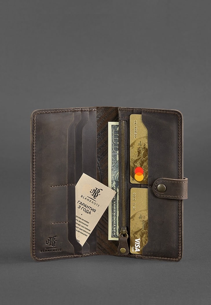 Кожаное портмоне на молнии BlankNote 7.0 Темно-коричневое Crazy Horse BN-PM-7-O