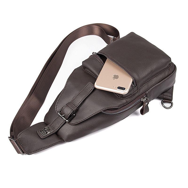Кожаный коричневый рюкзак-слинг John McDee jd4012q