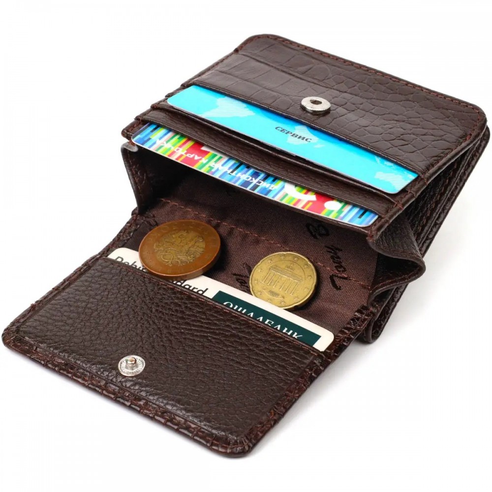 Количество основных отделений: 2 отделения для купюр; монетница; 4 ячейки для карт; 1 прилегающий карман;