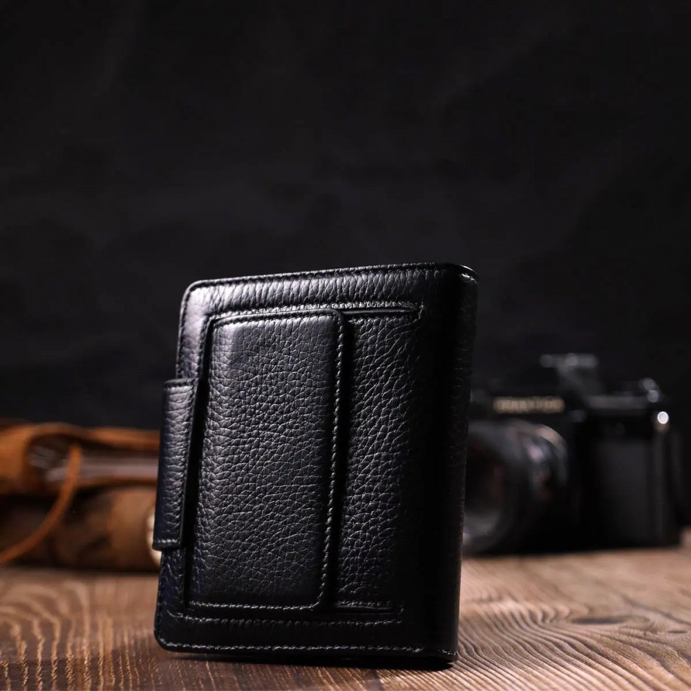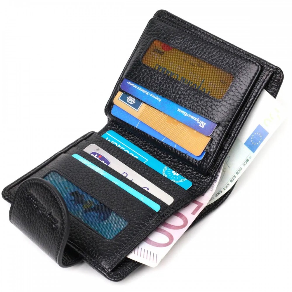 Количество основных отделений: 2 широких отделений для купюр; монетница под клапаном на кнопке снаружи; 9 ячеек для карт; 2 прилегающих кармана; карман под сеткой для документов;