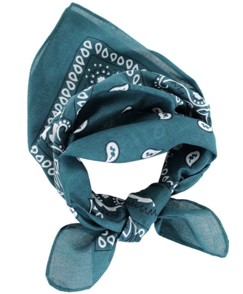 Платок-бандана тёмно-зеленого цвета, рисунок - турецкий огурец.