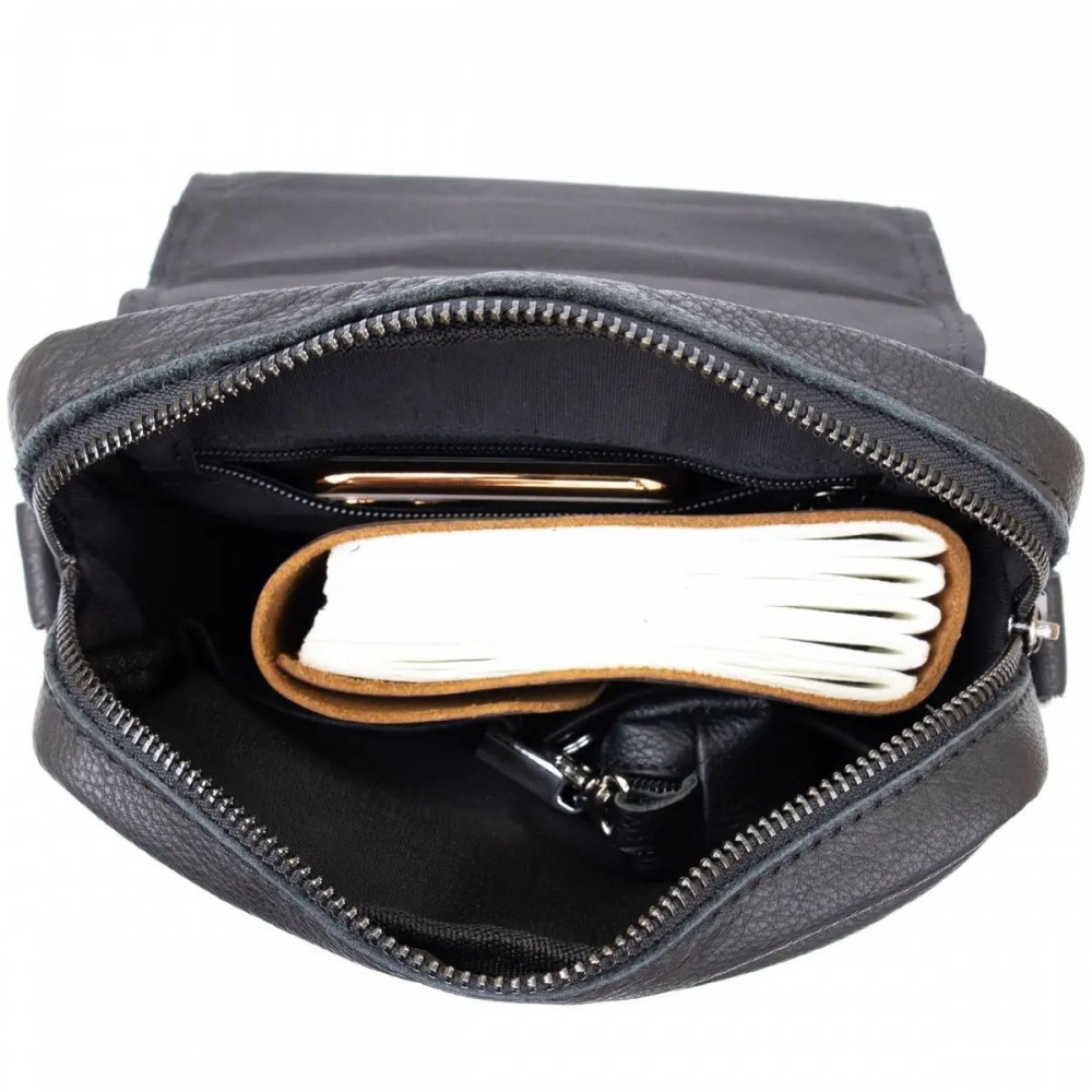 Количество отделов: основное отделение на молнии и под клапаном на магнитной кнопке; 2 накладных открытых кармана внутри; потайной карман на молнии; накладной карман на молнии и встроенный карман на молнии на лицевой стороне аксессуара; карман на молнии на тыльной стороне;