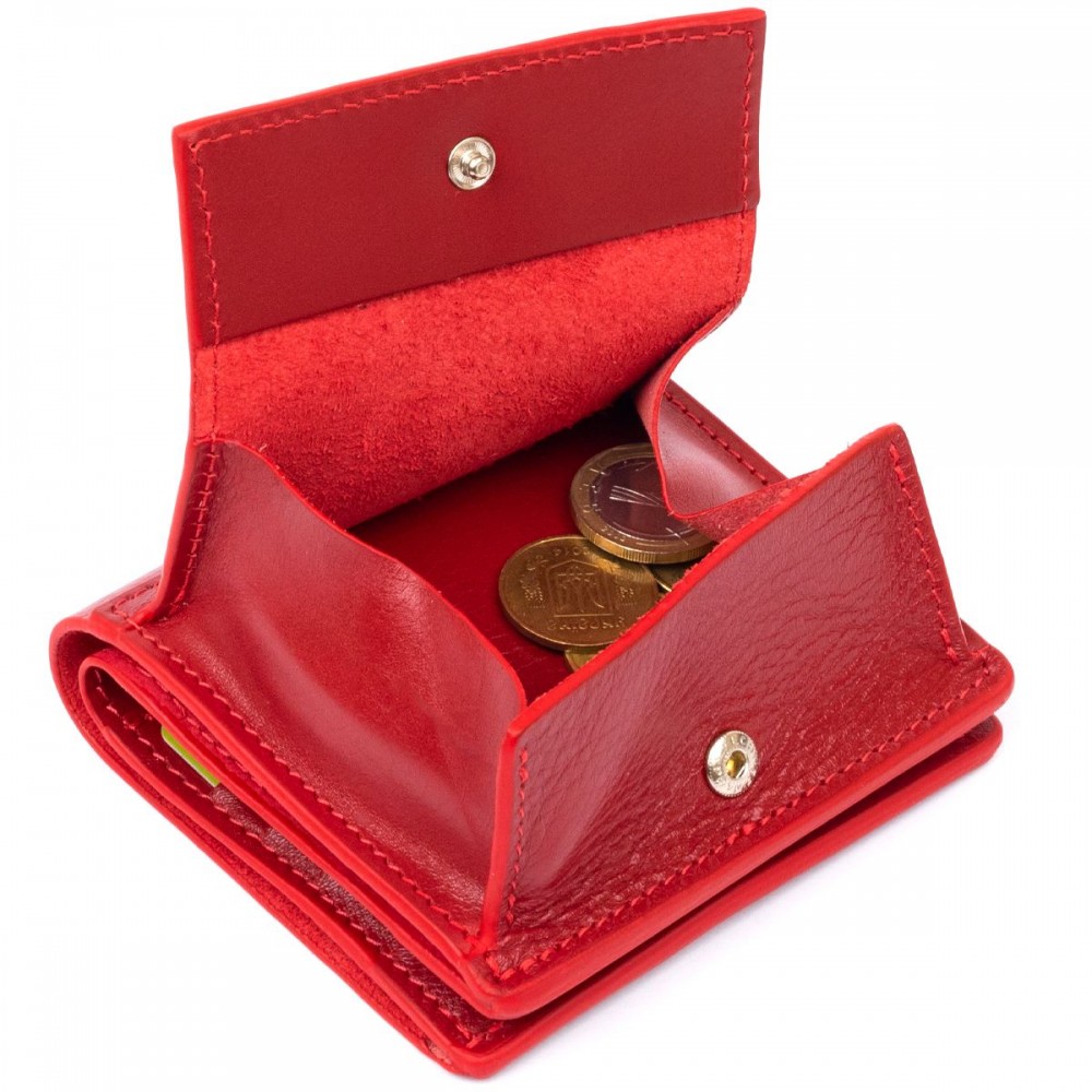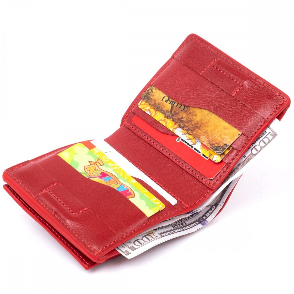Количество отделов: 6 ячеек для карточек, 2 открытых отделения для купюр, накладная монетница на кнопке сзади изделия.