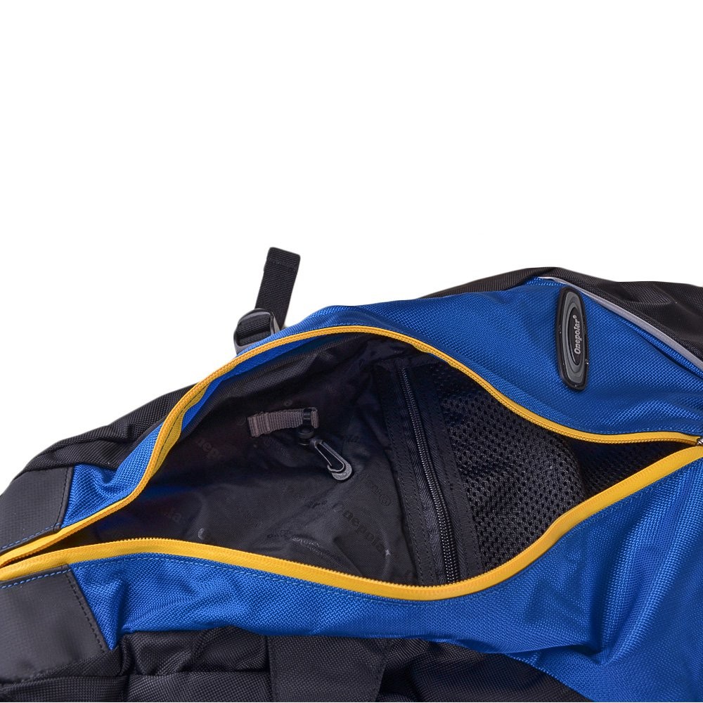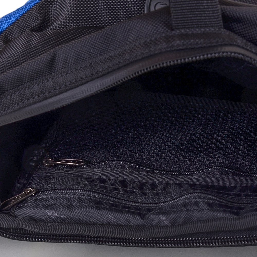 Количество отделов: одно основное отделение на двусторонней вертикальной молнии (внутри него есть два кармана на молнии). Есть еще одно отделение на вертикальной молнии (внутри него есть карман-сетка на молнии и пластиковый карабин). На плечевом ремне есть карман на липучке для телефона.
