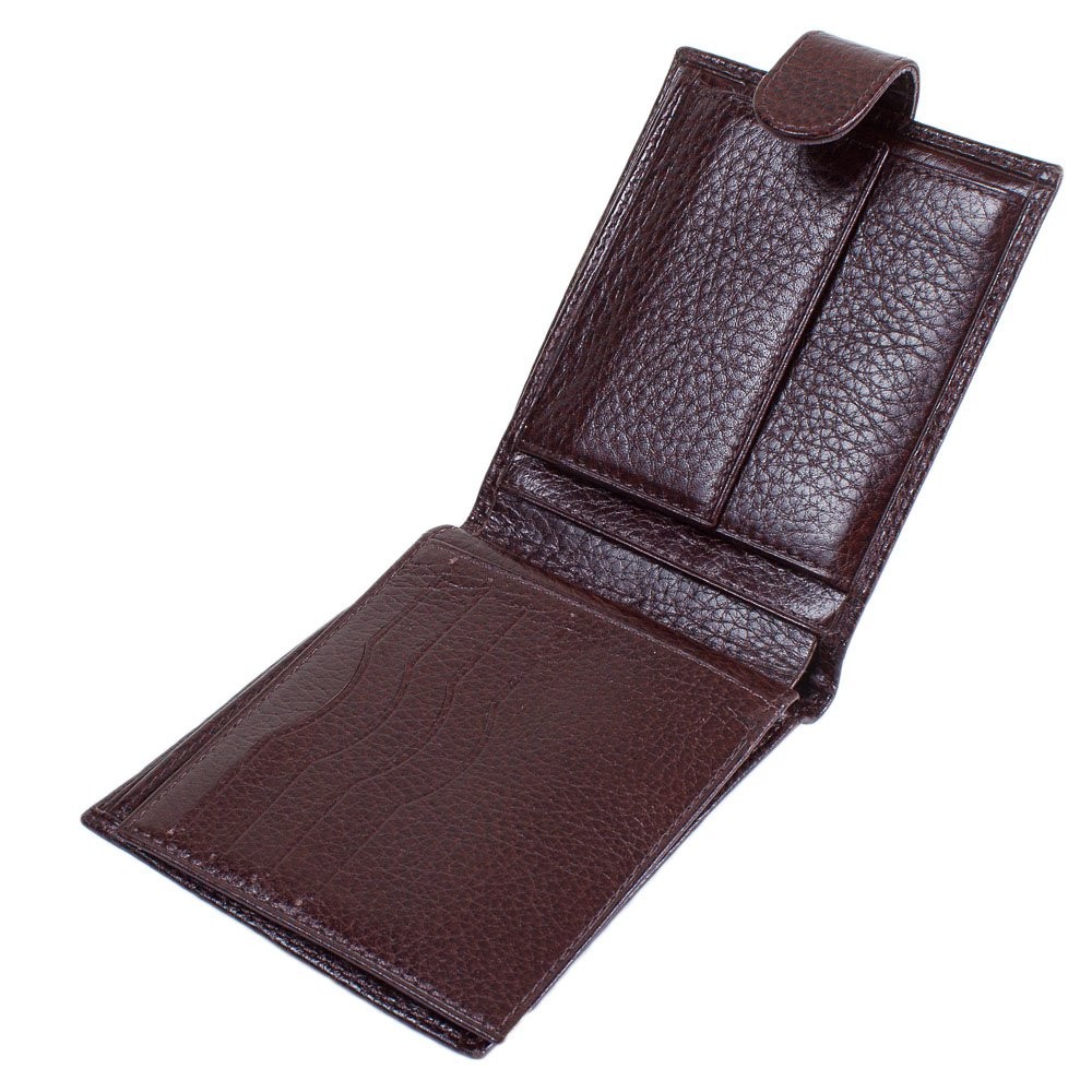 Количество отделов: два основных отдела для купюр, четыре дополнительных отдела, одно прозрачное окошко для пропуска, восемь слотов для визиток и карман-монетница (закрывается при помощи клапана на механической кнопке).