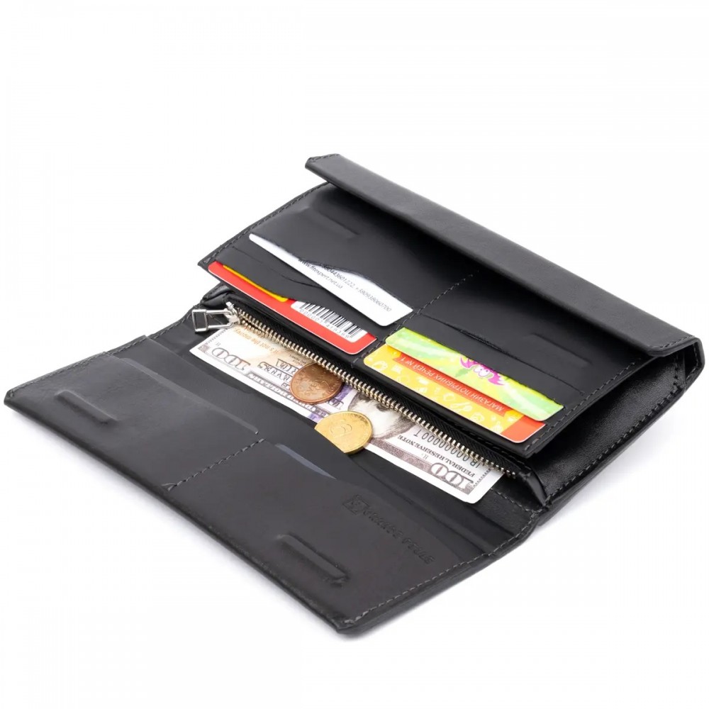 Количество отделов: отсеки для купюр, карман для мобильного телефона, 10 слотов для кредитных и дисконтных карт, карман на молнии, 2 дополнительных кармана.