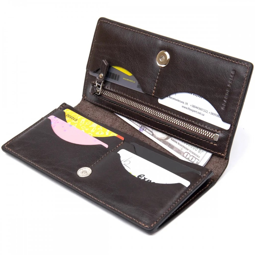 Посмотреть фото и описание, а так же купить недорого Мужской кожаный кошелек GRANDE PELLE 11469 Темно-коричневый в Украине. Реальные фотографии и точное описание. Быстрая доставка товара в любой город, бесплатная доставка от 1 500 грн. Наш товар вы можете купить в Киеве, Одессе, Харькове, Днепропетровске, Ивано-Франковске, Львове и других городах и поселках. За консультацией вы можете обратиться к нашим специалистам по телефону: 095 458 1095.