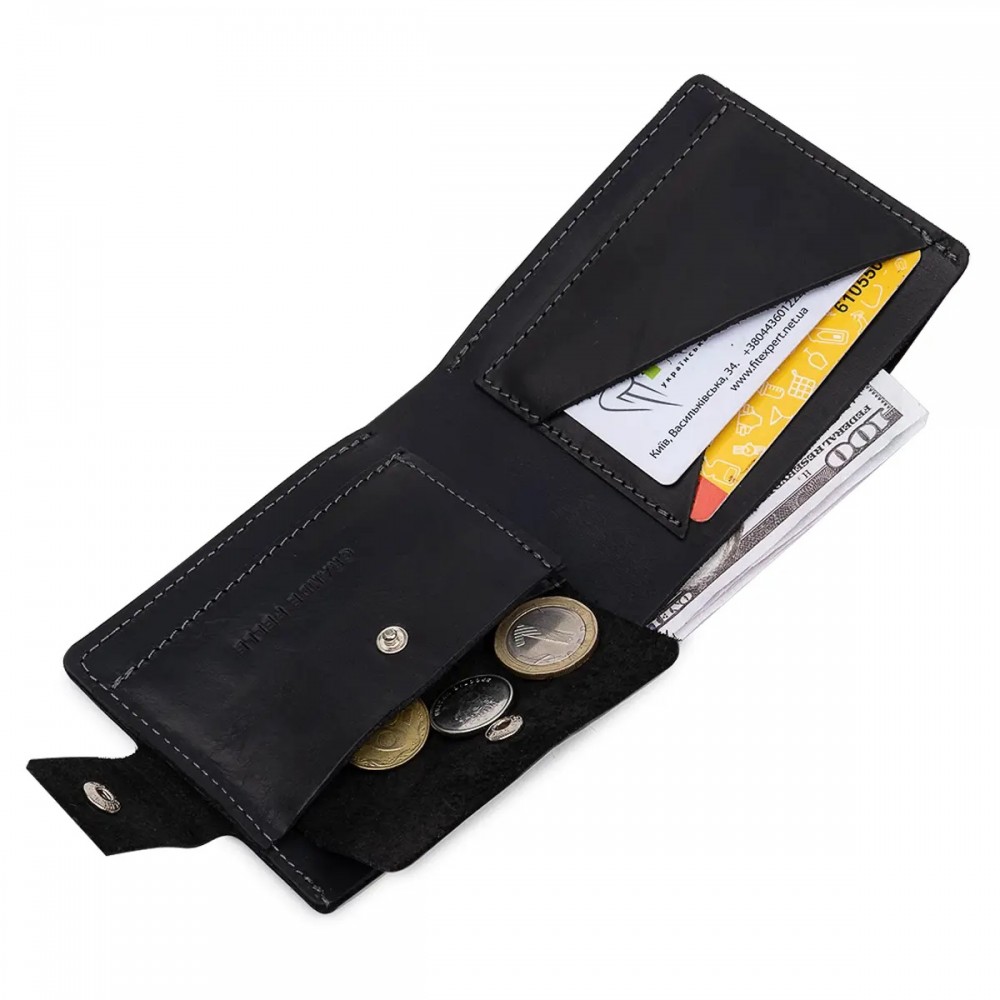 Количество отделений: отсек для купюр, 2 слота для кредитных и дисконтных карт, монетница на кнопке.