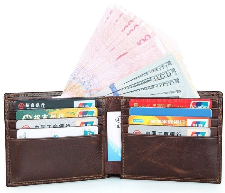 Количество отделов: 2 отдела для купюр, 10 слотов для кредитных карт, наружный карман
