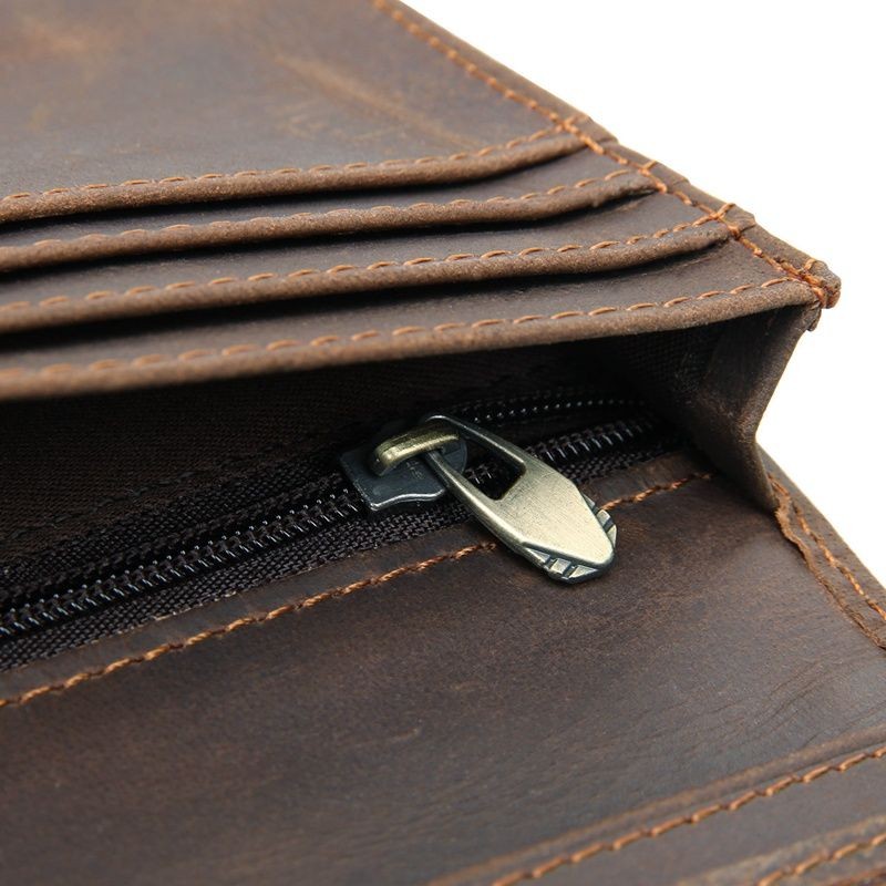 Количество отделов: 3 отдела для купюр, карман на молнии, 11 слотов для кредитных карт, прозрачное окошко