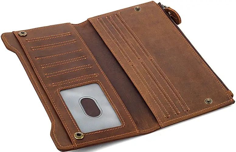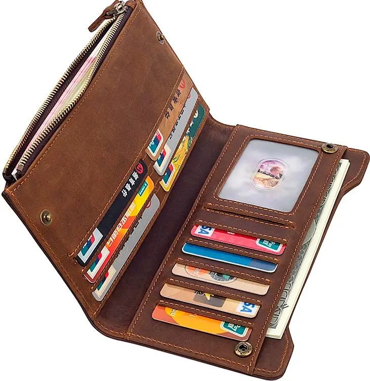 Количество отделов: 3 отделения для купюр; 12 ячеек для пластиковых кредитных карточек (одна под прозрачной пленкой);- карман на молнии с внешней стороны;