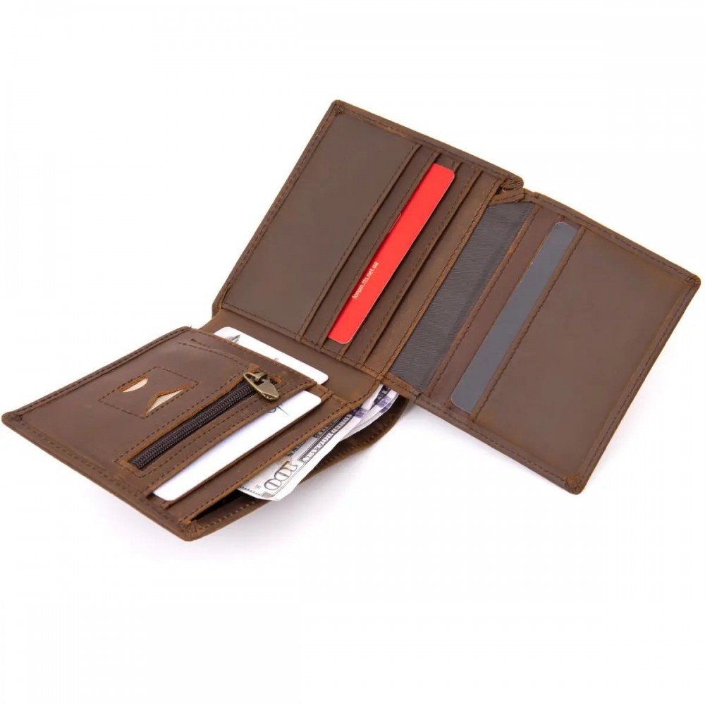 Количество отделов: 2 отделения для купюр; 10 ячеек для кредиток (одна под пленкой); 2 открытых кармана; кармашек на молнии (может быть использован для монет); кармашек под сим-карту;