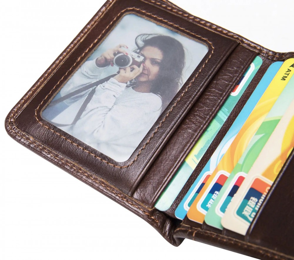 Количество отделов: 2 основных отделения для купюр; 5 слотов для кредиток (1 из них под пленкой); 1 открытый карман;