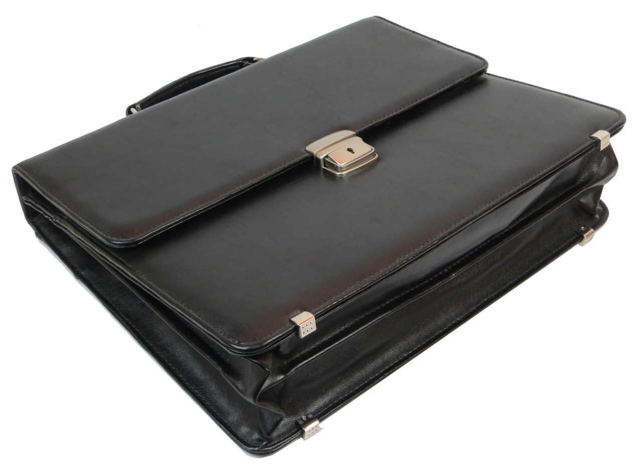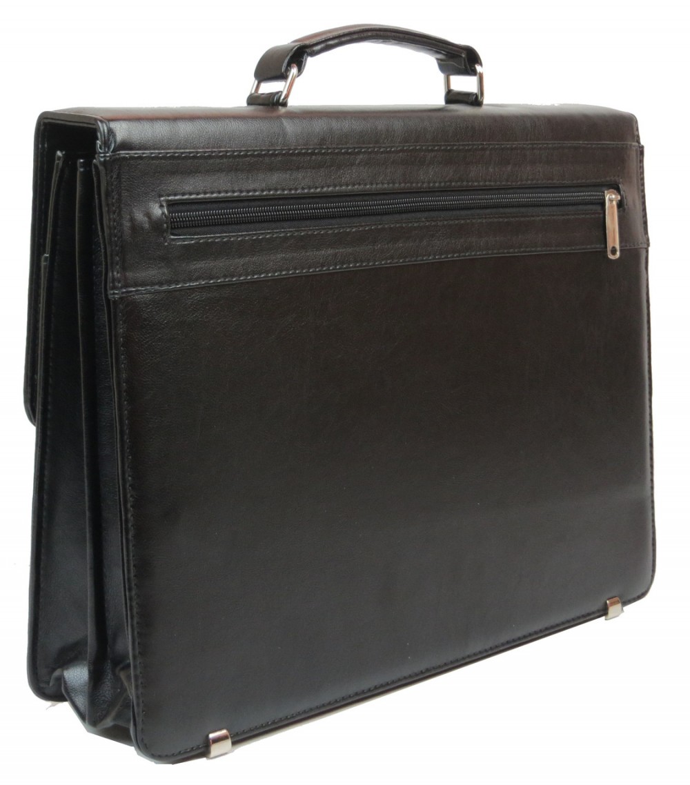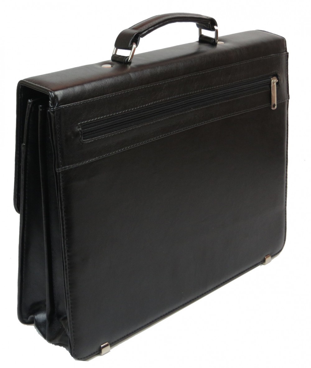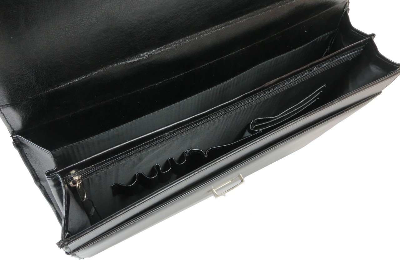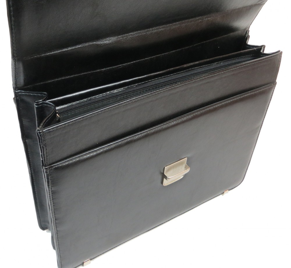 Количество отделений: 2 основных отделения и плоский карман. В одном из отделений расположен карман на молнии, 4 петли для ручек, открытый карман для мобильного телефона, 3 кармашка для визиток. Сзади портфеля расположен карман на молнии.