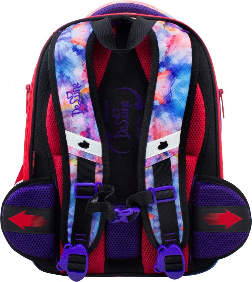 - Эргономичная спинка: разработана по новым технологиям, учитывающие особенности анатомии ребенка. Позвоночник защищен специально сконструированной спинкой с саморегулирующей боковой поддержкой, которая при ходьбе не позволяет смещаться ранцу в стороны, надежно фиксируя на пояснице, и подходит ребенку любой комплекции. Надежная фиксация делает ношение максимально удобным.