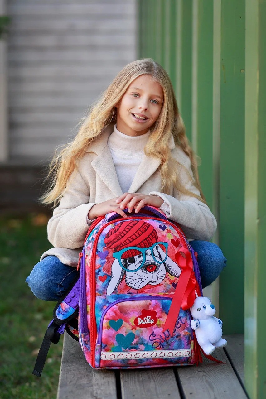 Набор школьный рюкзак, сумка для обуви, пенал для девочек DeLune 10-002