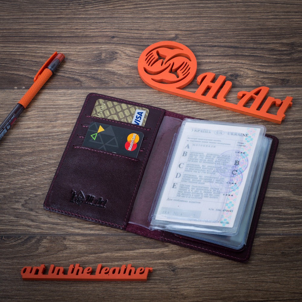 Отделения: 1 отделение для паспорта 1 карман с пластиковым окном для водительских прав старого образца 1 откидной карман с пластиковым окном для биометрического паспорта / свидетельства о регистрации / страховки 4 секции для карт. Каждая вмещает до 5 карт Укомплектованна дополнительным ПВХ вкладышей для Доверенности и прочих документов.