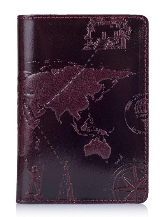 Обложка-органайзер для документов из кожи HiArt AD-01 7 Wonders of the World темно-фиолетовый