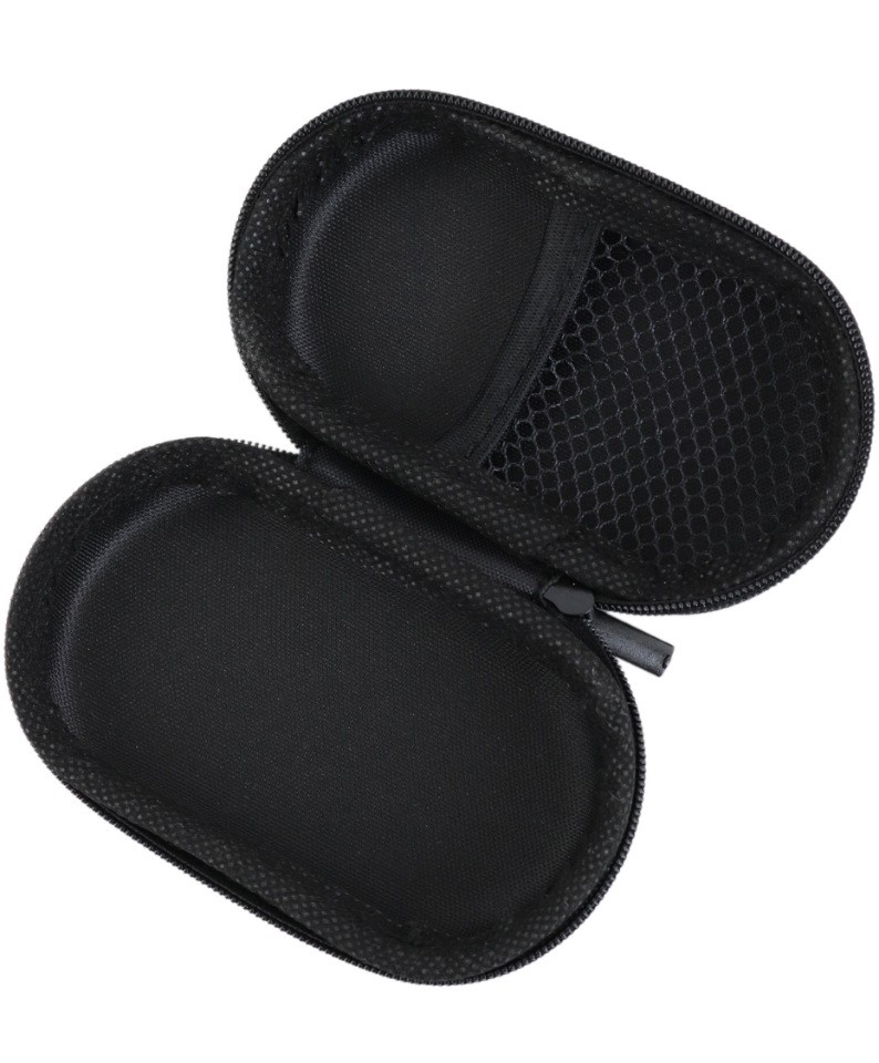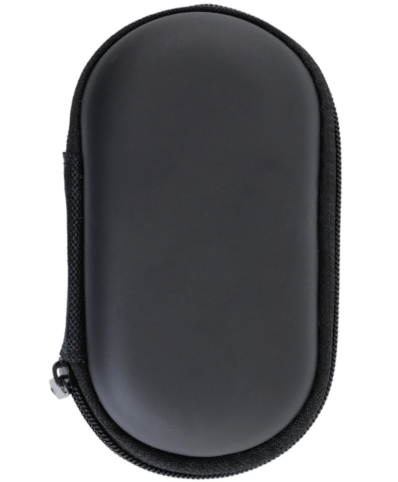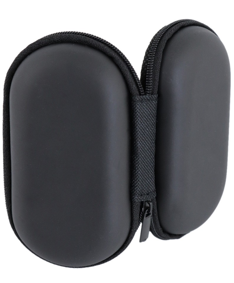 Жесткий чехол для мини-наушников, флешки, карты памяти; овальной формы, цвет- черный. Закрывается на молнию, внутри- сеточный кармашек.