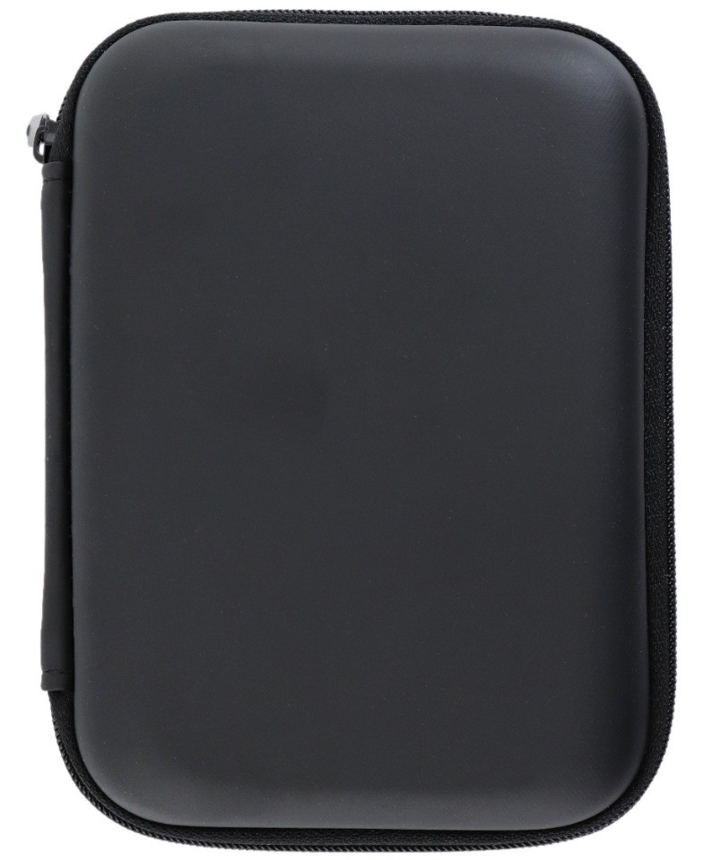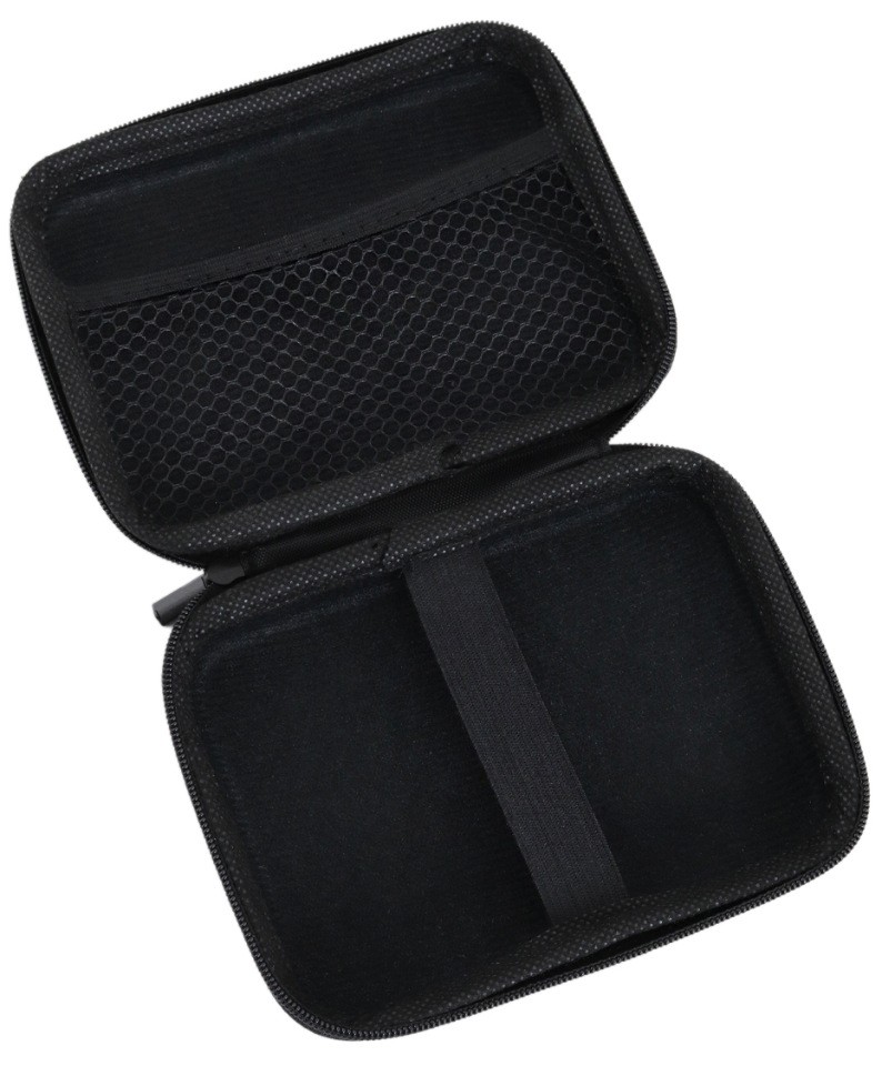 Чехол для жесткого диска черного цвета, на молнии. Внутри: сеточный карман и резинка-держатель.