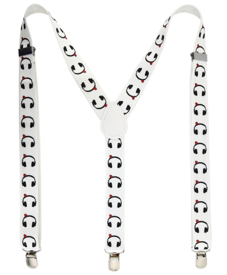 Подтяжки белого цвета с рисунком наушников. Регулируемая длина