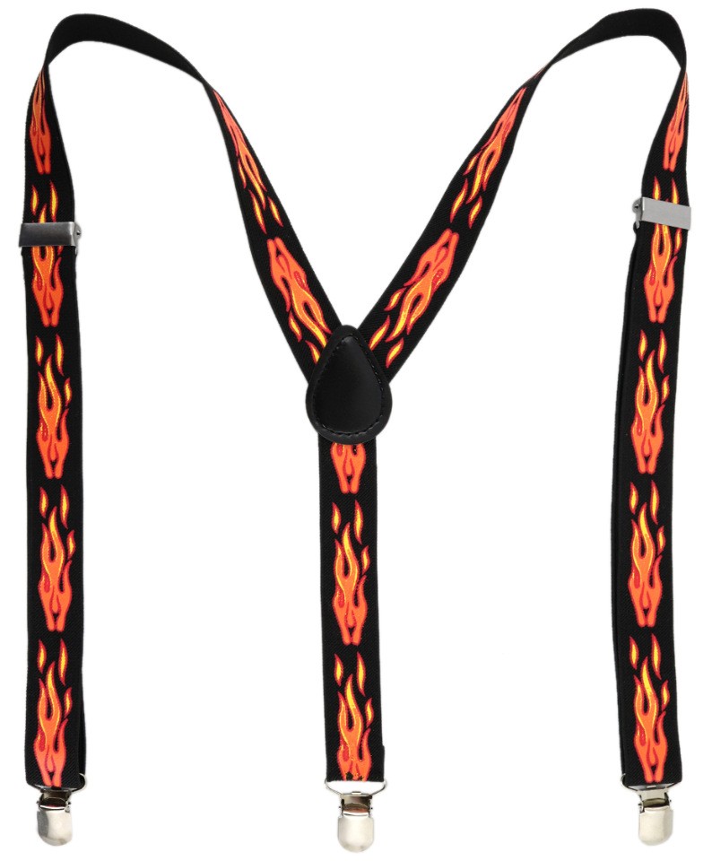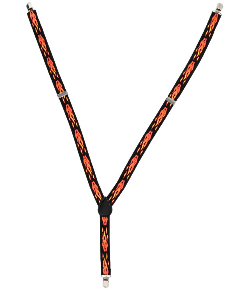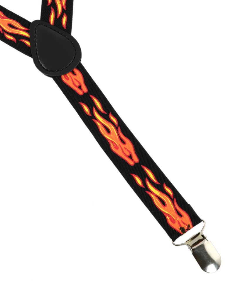 Подтяжки черного цвета с ярким рисунком языков пламени. Регулируемая длина