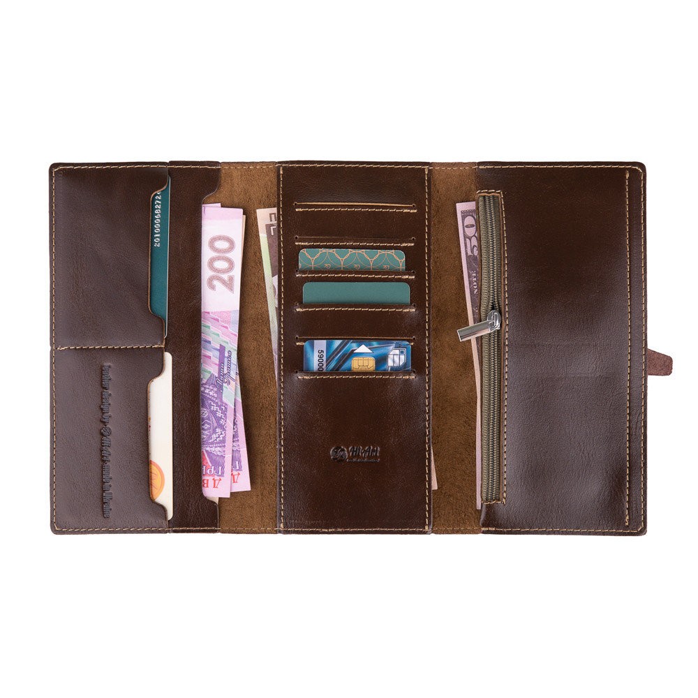 Эргономичный и стильный кошелек ручной работы из натуральной кожи на кнопках с художественным тиснением от HiArt , со всеми необходимыми отделами для купюр и мелочи. Будет отличным дополнением образа.