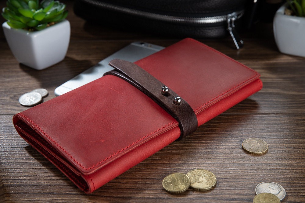 Эргономичный и стильный кошелек ручной работы из натуральной кожи на кнопках с художественным тиснением от HiArt , со всеми необходимыми отделами для купюр и мелочи. Будет отличным дополнением образа.