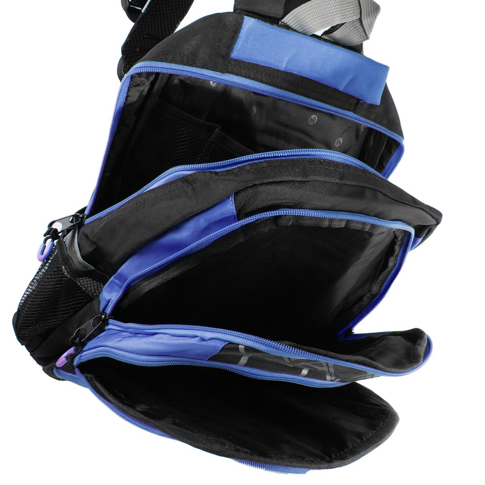 Количество основных отделений: 3. Внутри есть накладной карман-сетка. Рюкзак имеет боковые карманы из сетки. Спереди есть карман на молнии.