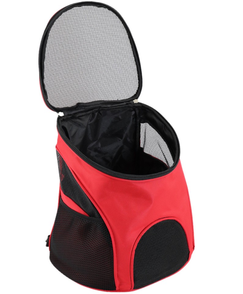На фасаде, по бокам и верх- сетчатое окошко. Регулируемые плечевые лямки, боковые сеточные карманы.