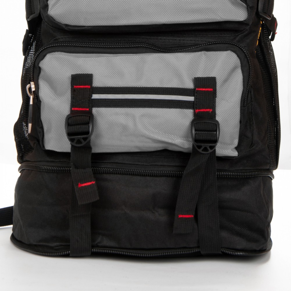 Количество отделений: 1 основное отделение с карманом для ноутбука и карманом для смартфона. Отделение может увеличиваться в высоту на 10см. благодаря молнии расширения. На фасаде находятся два больших кармана на молнии, дополнительная ручка и светоотражающая полоса. На боковых сторонах рюкзака карманы-сетки для бутылок воды объемом 0,5 л.