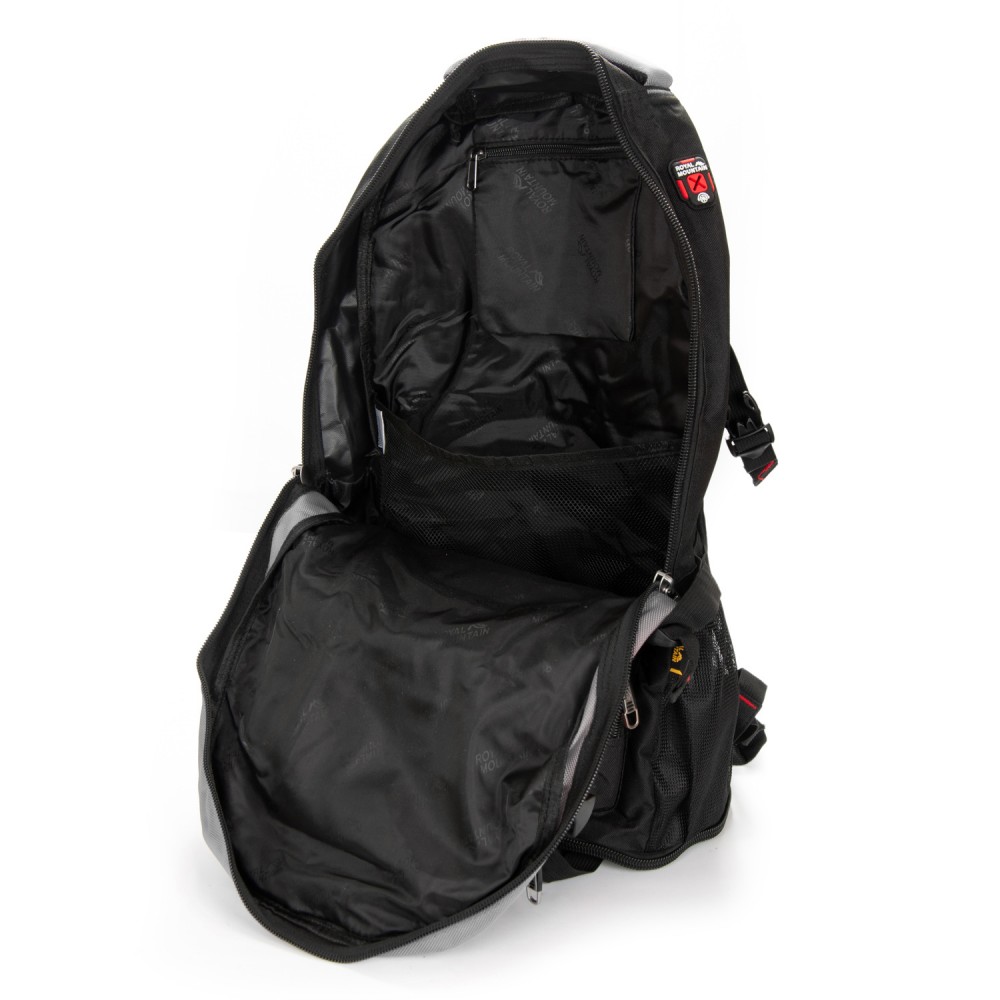 Количество отделений: 1 основное отделение с карманом для ноутбука и карманом для смартфона. Отделение может увеличиваться в высоту на 10см. благодаря молнии расширения. На фасаде находятся два больших кармана на молнии, светоотражающая полоса. На боковых сторонах рюкзака карманы-сетки для бутылок воды объемом 0,5 л.