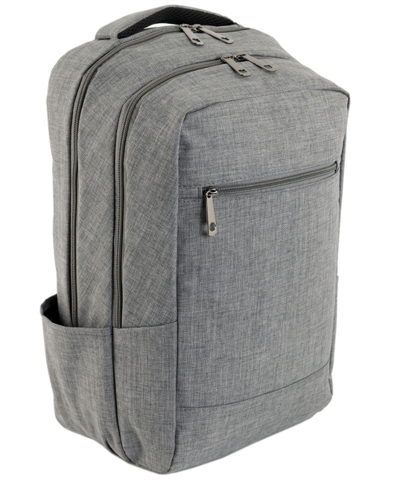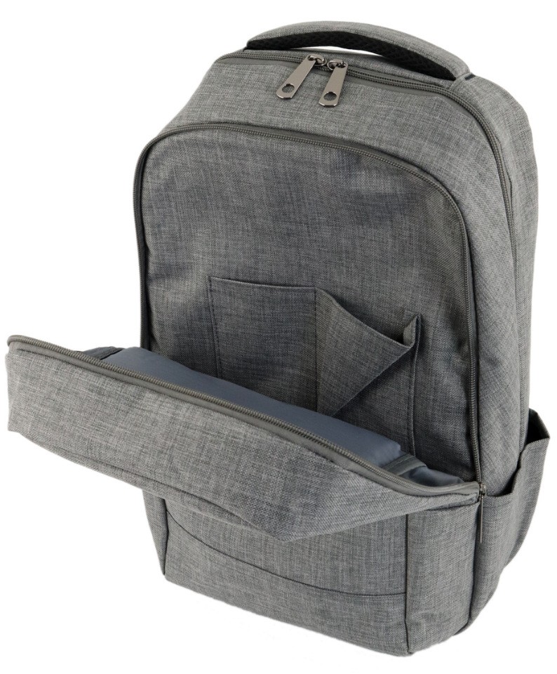 Рюкзак из плотного холста. На молнии, внутри: уплотненный карман для планшета и большой сетчатый. С лицевой стороны: карман для документов на молнии с 2мя маленькими кармашками и горизонтальный карман на молнии. Боковые карманы, уплотненная спинка, регулируемые ремни.
