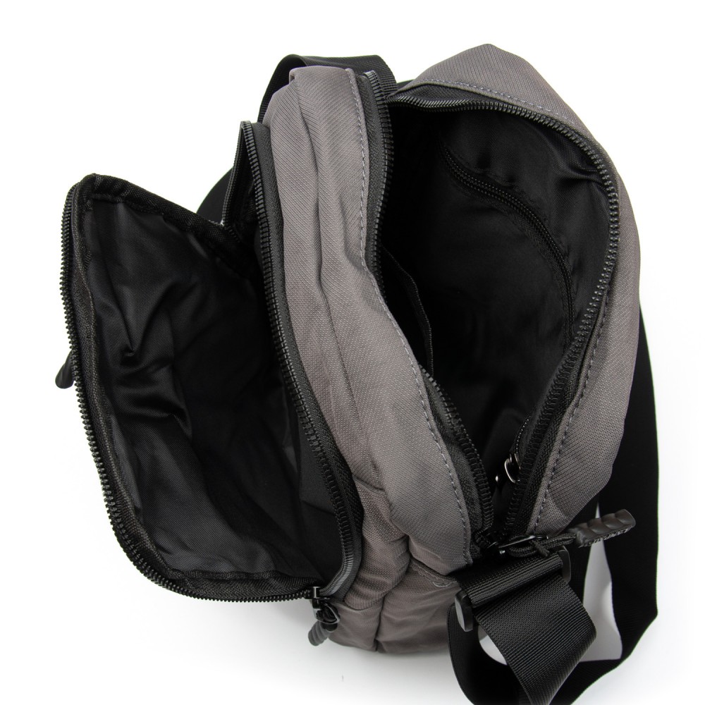 Количество отделов: 2 больших отделения, закрываются на молнии. Внутри одного отделения есть боковой карман на молнии и открытый карман. На фасаде расположены два вместительных кармана на молнии. На обратной стороне сумки находится один карман на молнии. Регулируемый плечевой ремень шириной 3,5см.