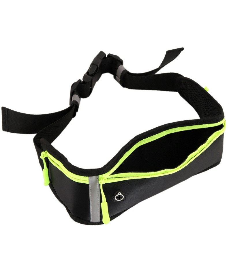 Сумка на пояс из плотного прорезиненного нейлона черного цвета. 1 отделение на молнии с выходом для наушников. По бокам 2 кармашка на молнии. Регулируемый ремень-резинка.