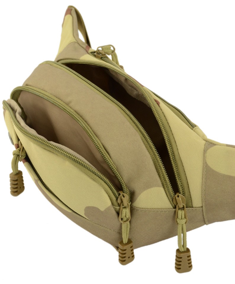 Сумка на пояс из плотной непромокаемой ткани. 2 отделения на молнии; с лицевой стороны- 2 кармана на молнии, отверстие для наушников. Регулируемый корсажный ремень.